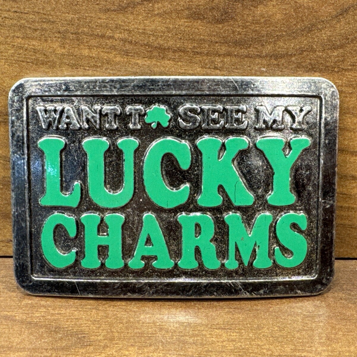 - Vintage You Want To See My Lucky Charms Silvertone Belt Buckle Cowboy