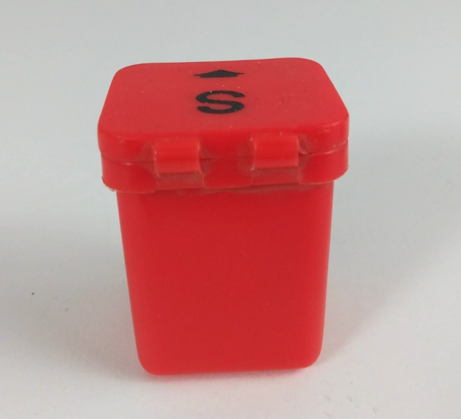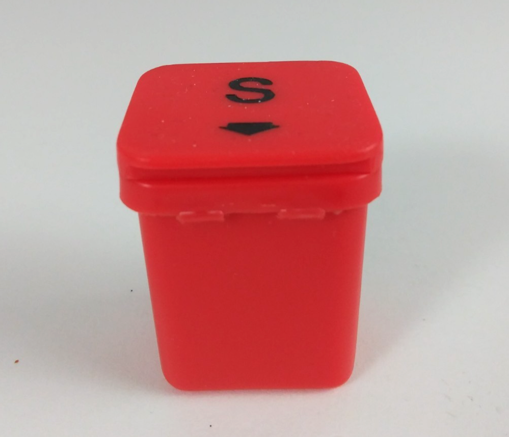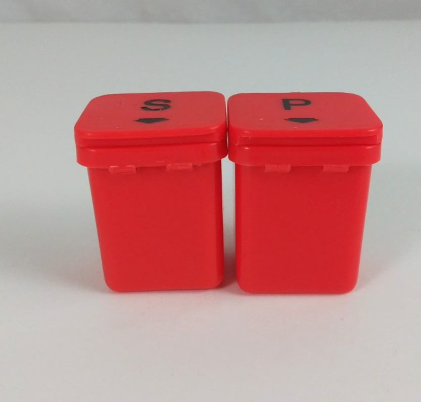 - Vintage Zelco Red Flip Top Recycle Bin Mini Plastic Salt & Pepper Shakers