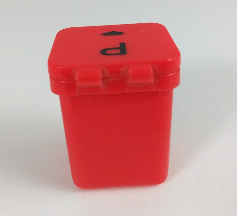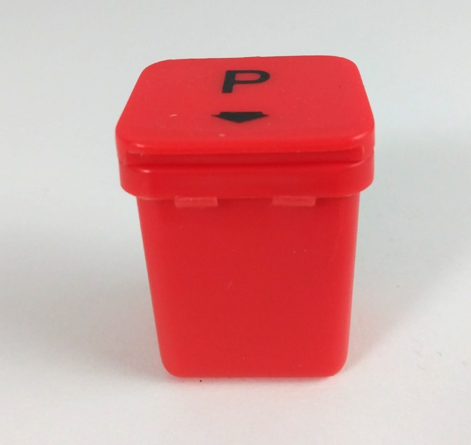 This is for a Vintage Zelco Red Flip Top Recycle Bin Mini Plastic Salt Pepper Shakers.