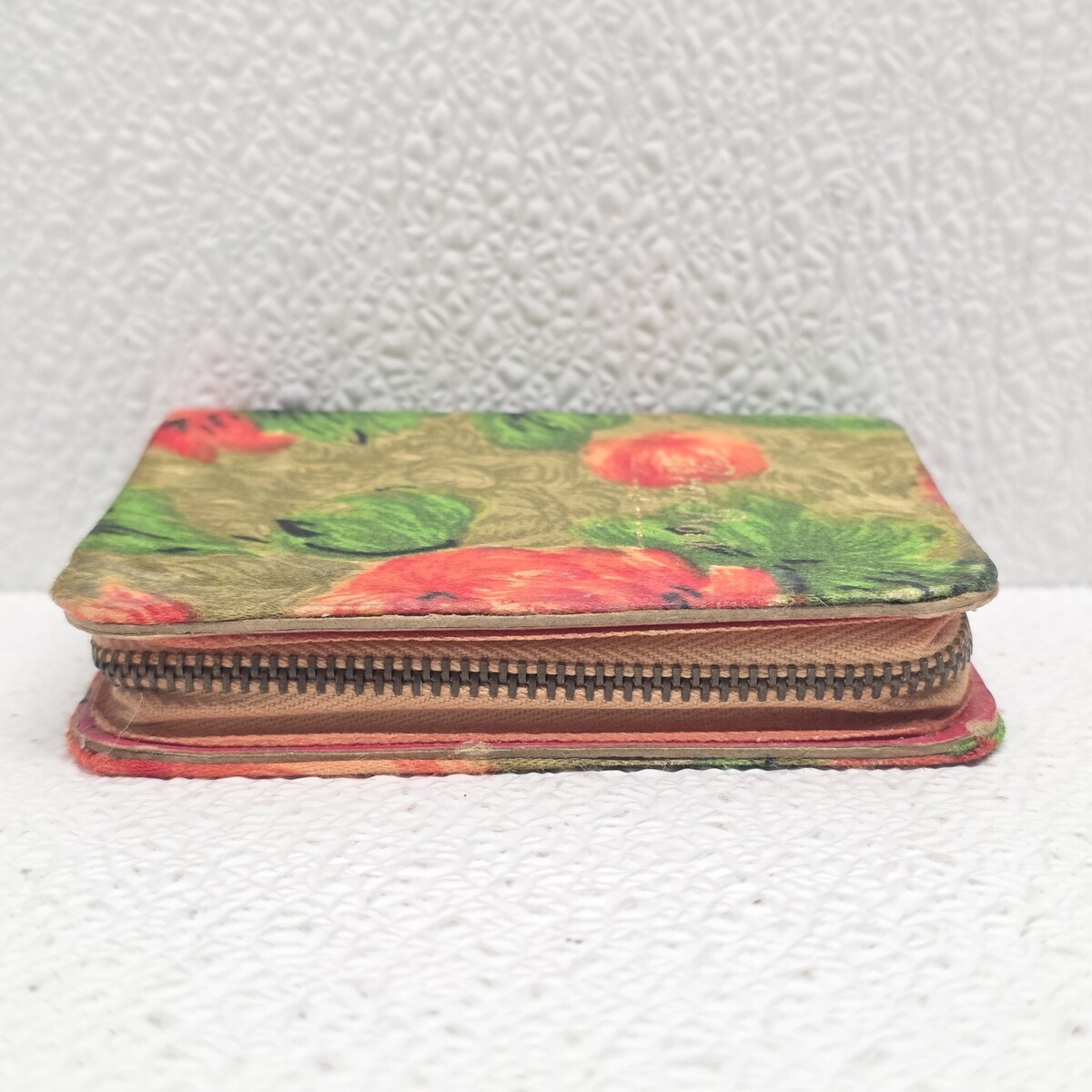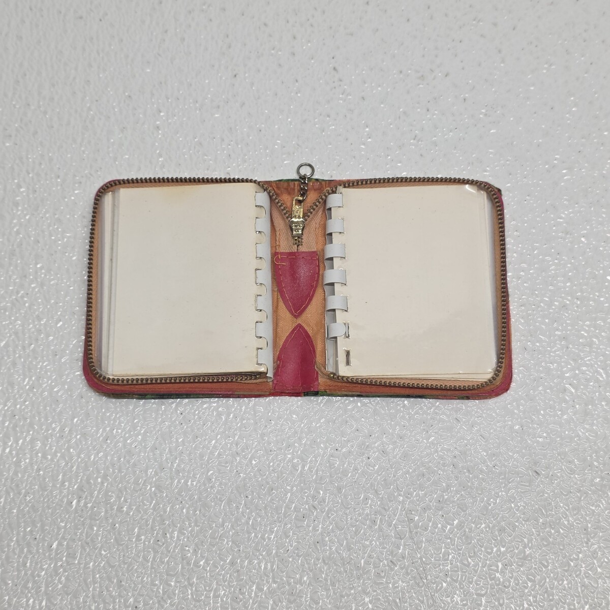Vintage Zip Brag Book 20 Pages Green Red Floral Fabric Cover 3.5" x 4"