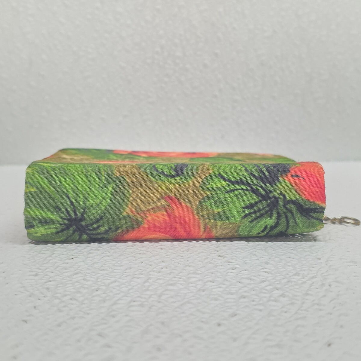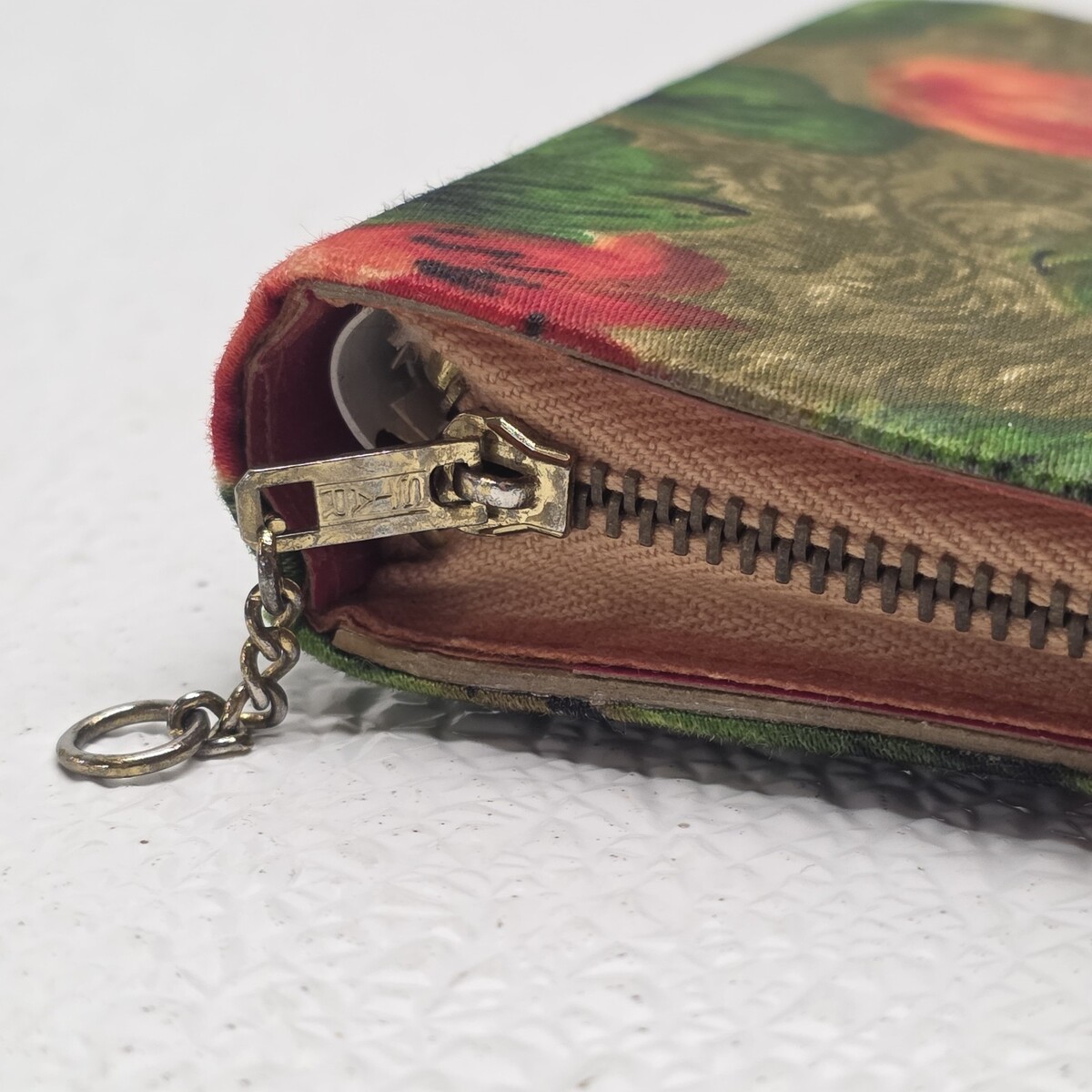 - Vintage Zip Brag Book 20 Pages Green Red Floral Fabric Cover 3.5" x 4"