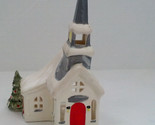 - Vintage ceramic white with gray trim Christmas church tea light candle holder