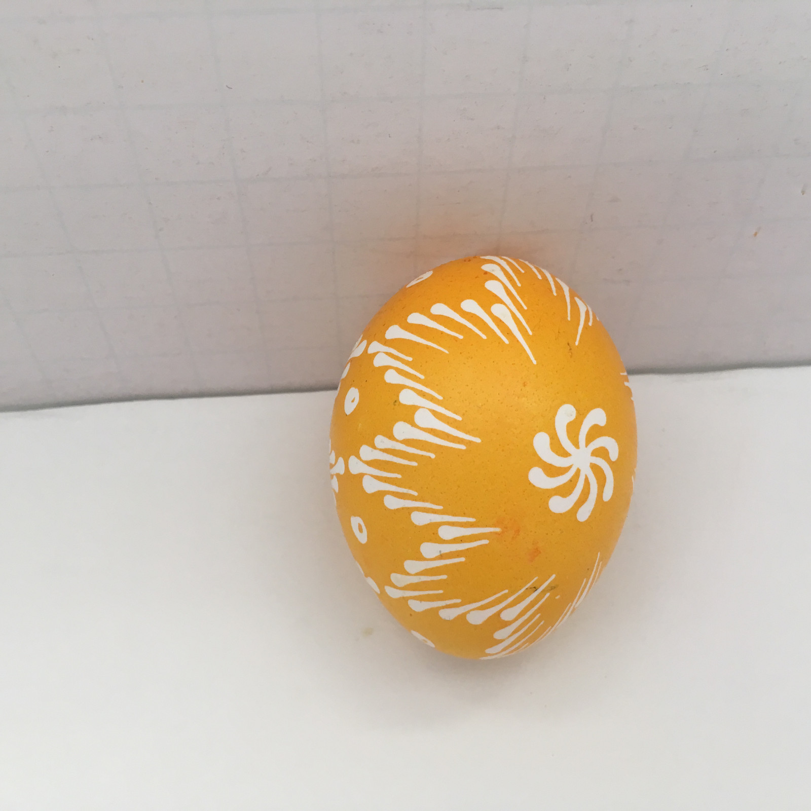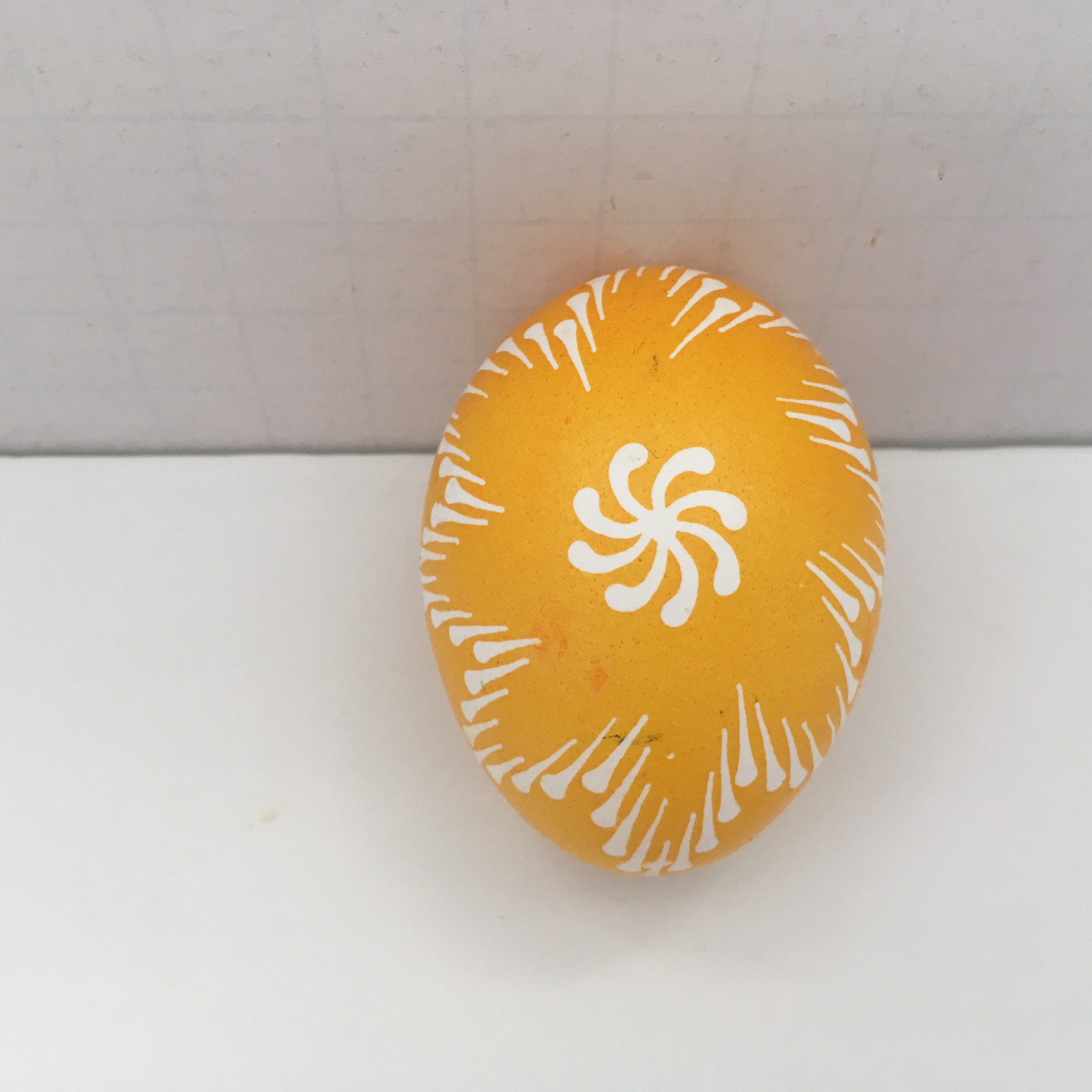 Vintage hand painted pysanky Russian orthodox Easter egg shell egg yellow white