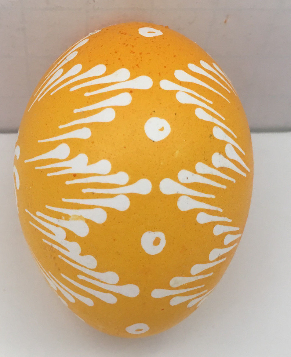 - Vintage hand painted pysanky Russian orthodox Easter egg shell egg yellow white