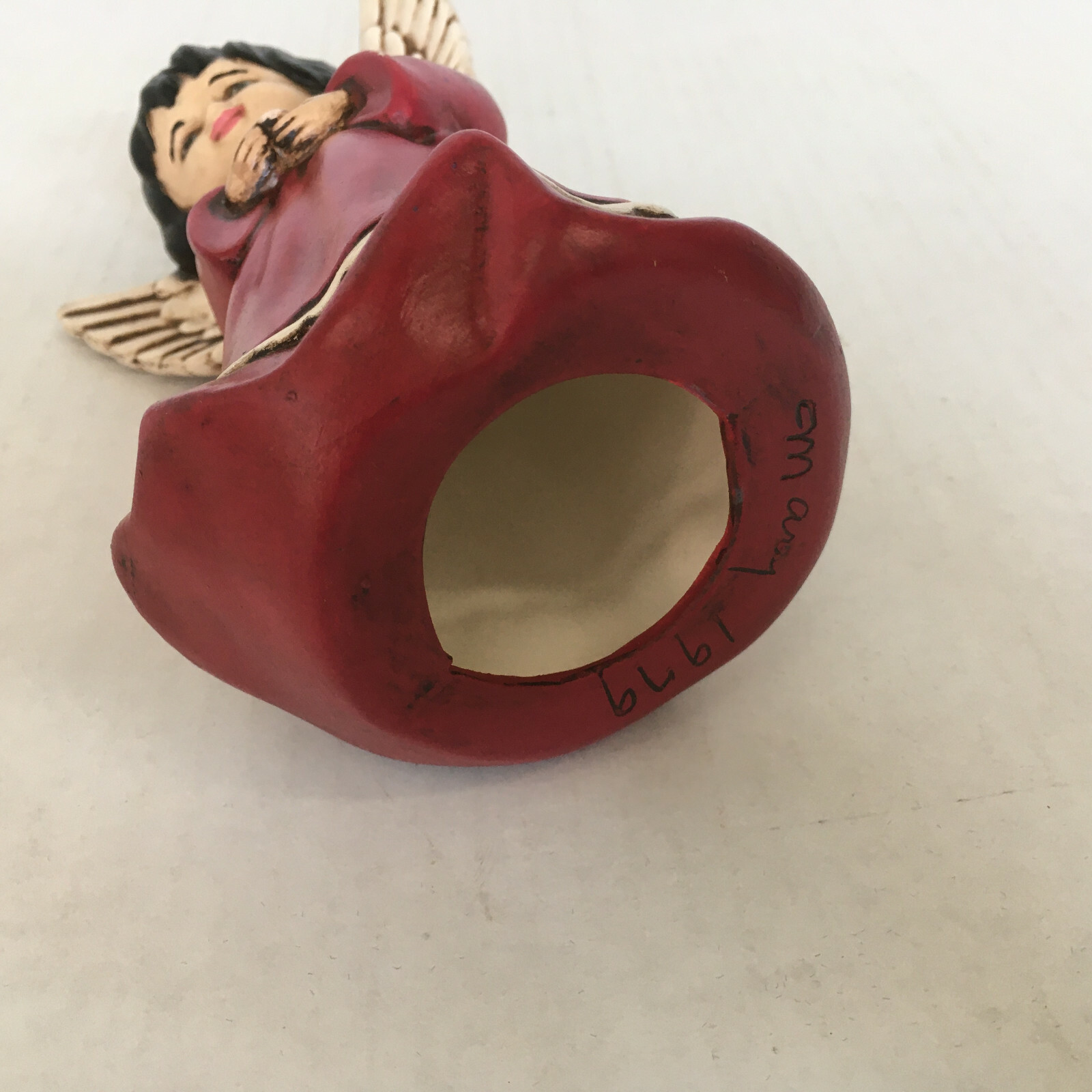 Vintage handpainted ceramic winter holiday Christmas dark hair red dress angel