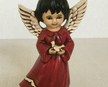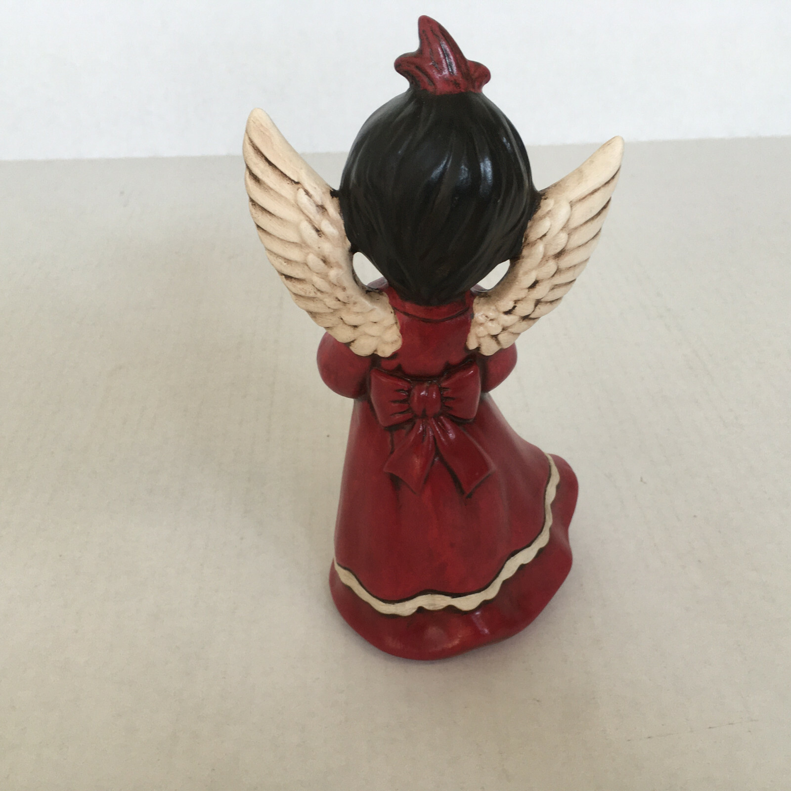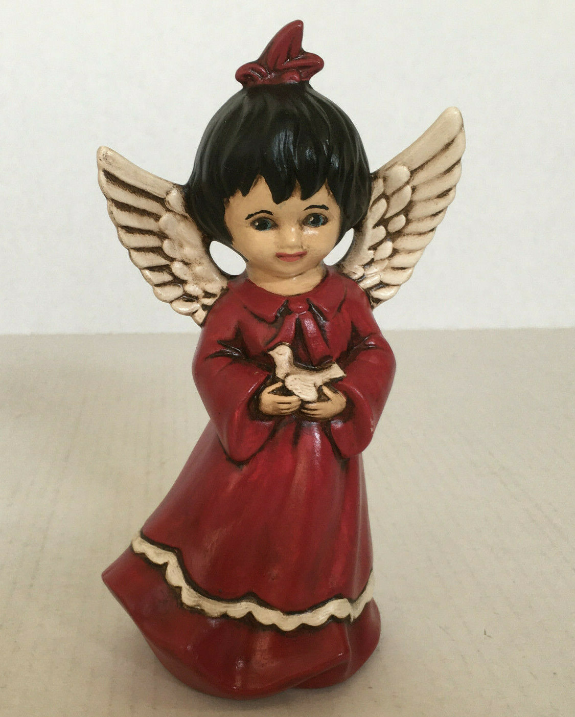 - Vintage handpainted ceramic winter holiday Christmas dark hair red dress angel