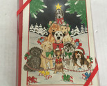 Vintage happy holidays greeting cards and envelopes Christmas tree dogs print