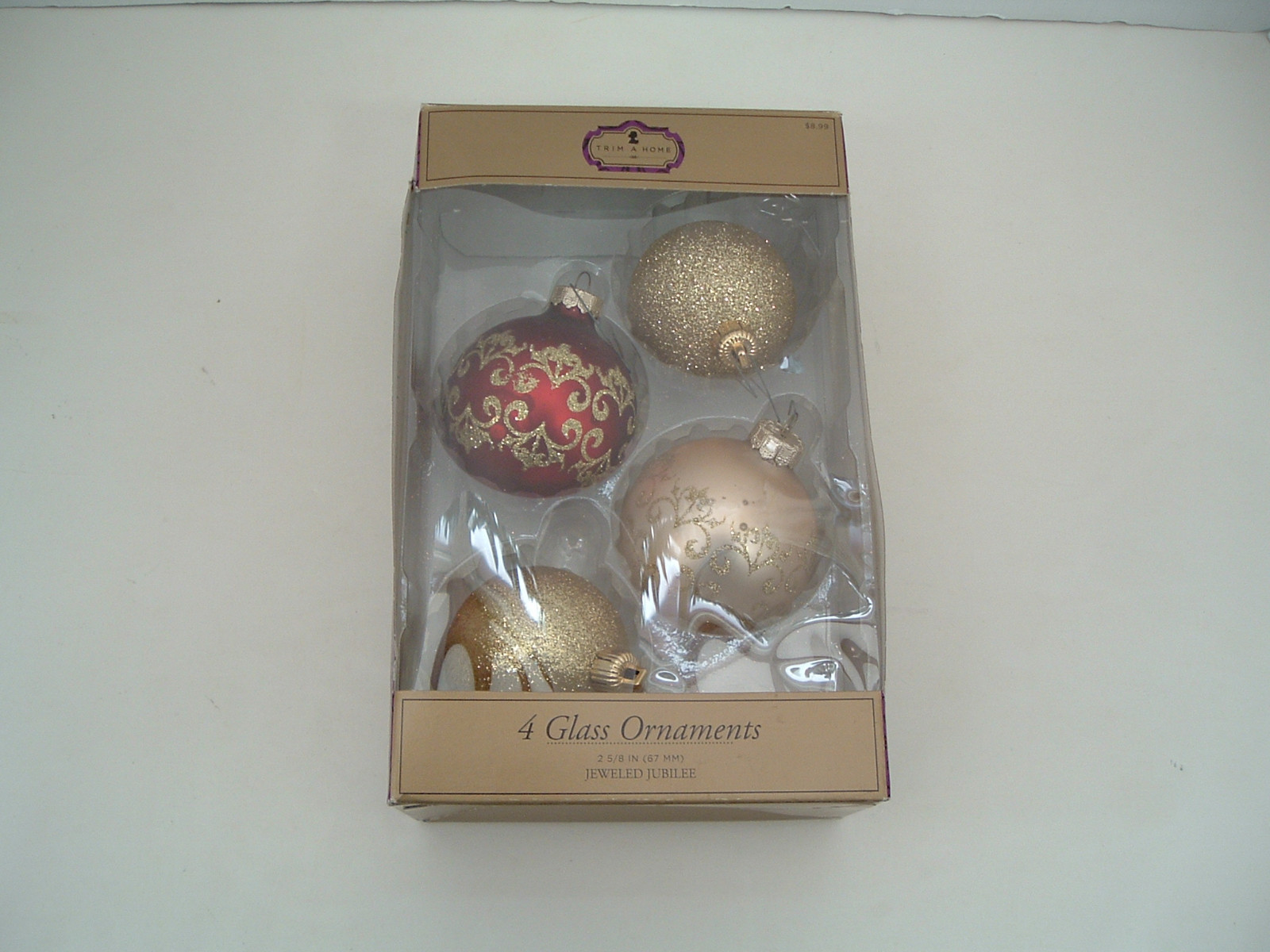 sears and roebuck co. trim a home 4 glass ornaments jeweled jubliee
