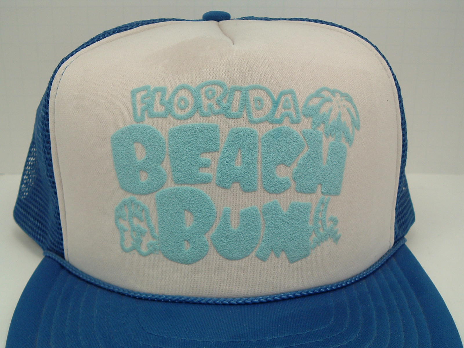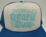 - Vintage mesh blue snapback trucker hat Florida beach bum graphics front unisex