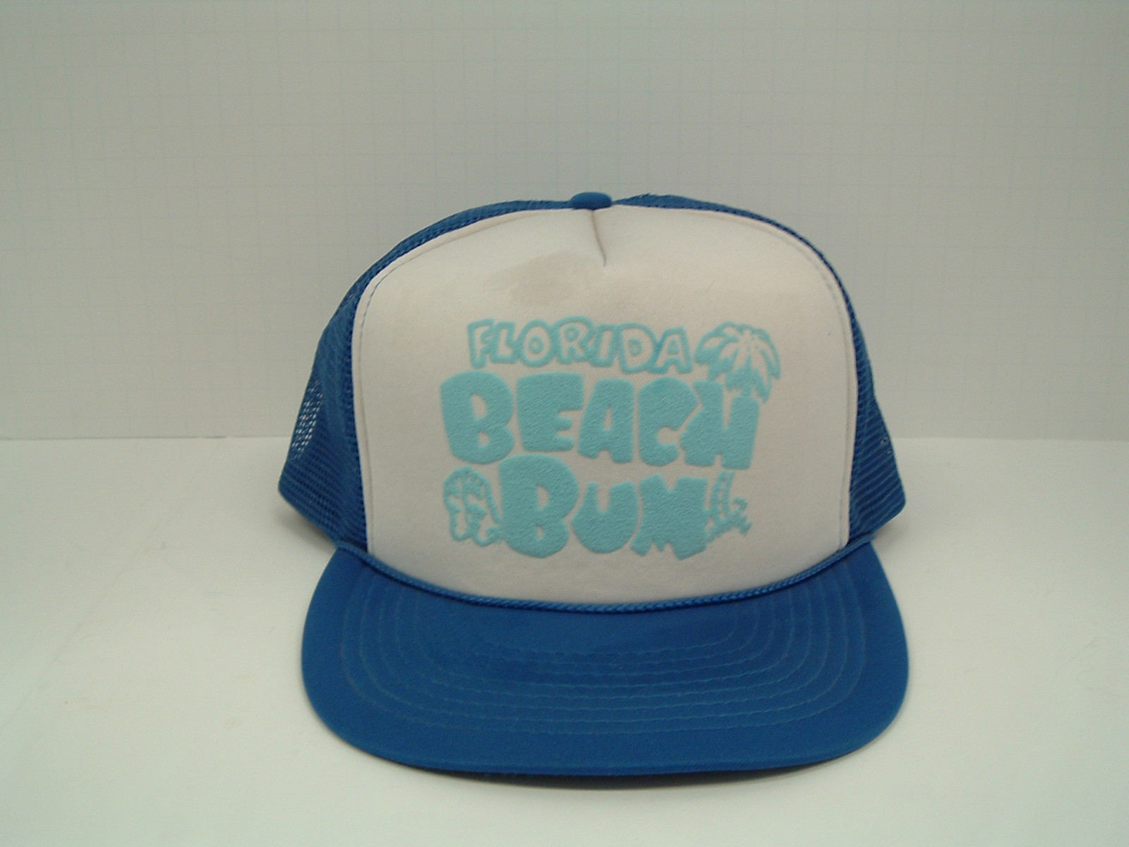 Vintage mesh blue snapback trucker hat Florida beach bum graphics front unisex