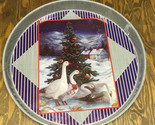 - Vintage round metal Christmas tray with white geese country holiday decor