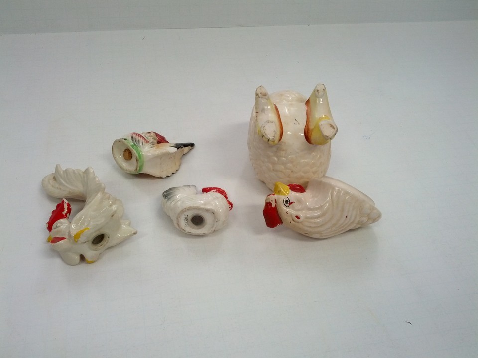 Vintage shabby chic country salt and pepper lot chicken hen rooster large bird