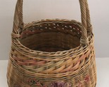 - Vintage shabby chic large woven wood basket with handles flower design front