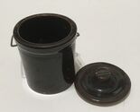 Vintage stoneware small brown crock cheese jar with wire bale lid country decor