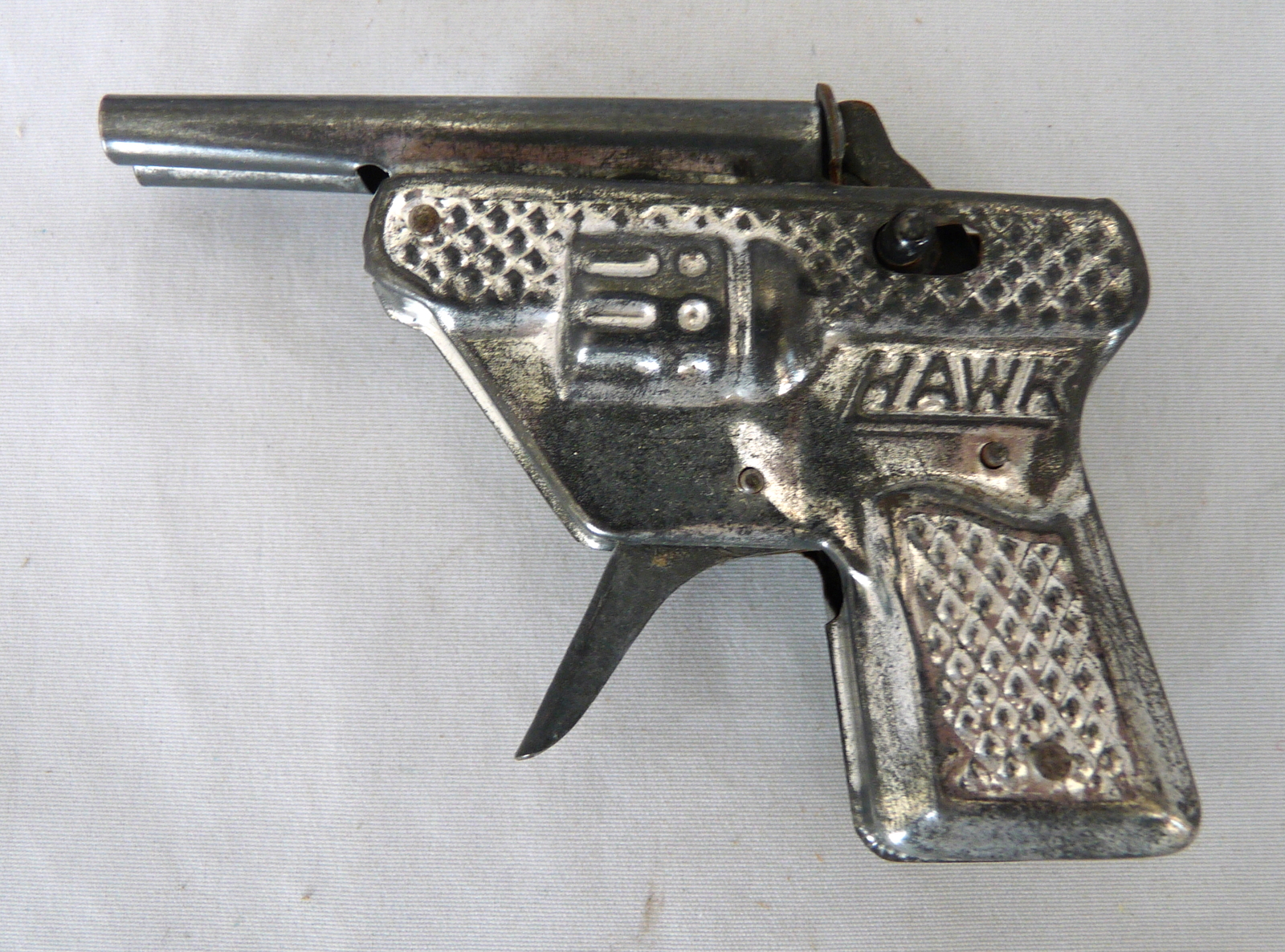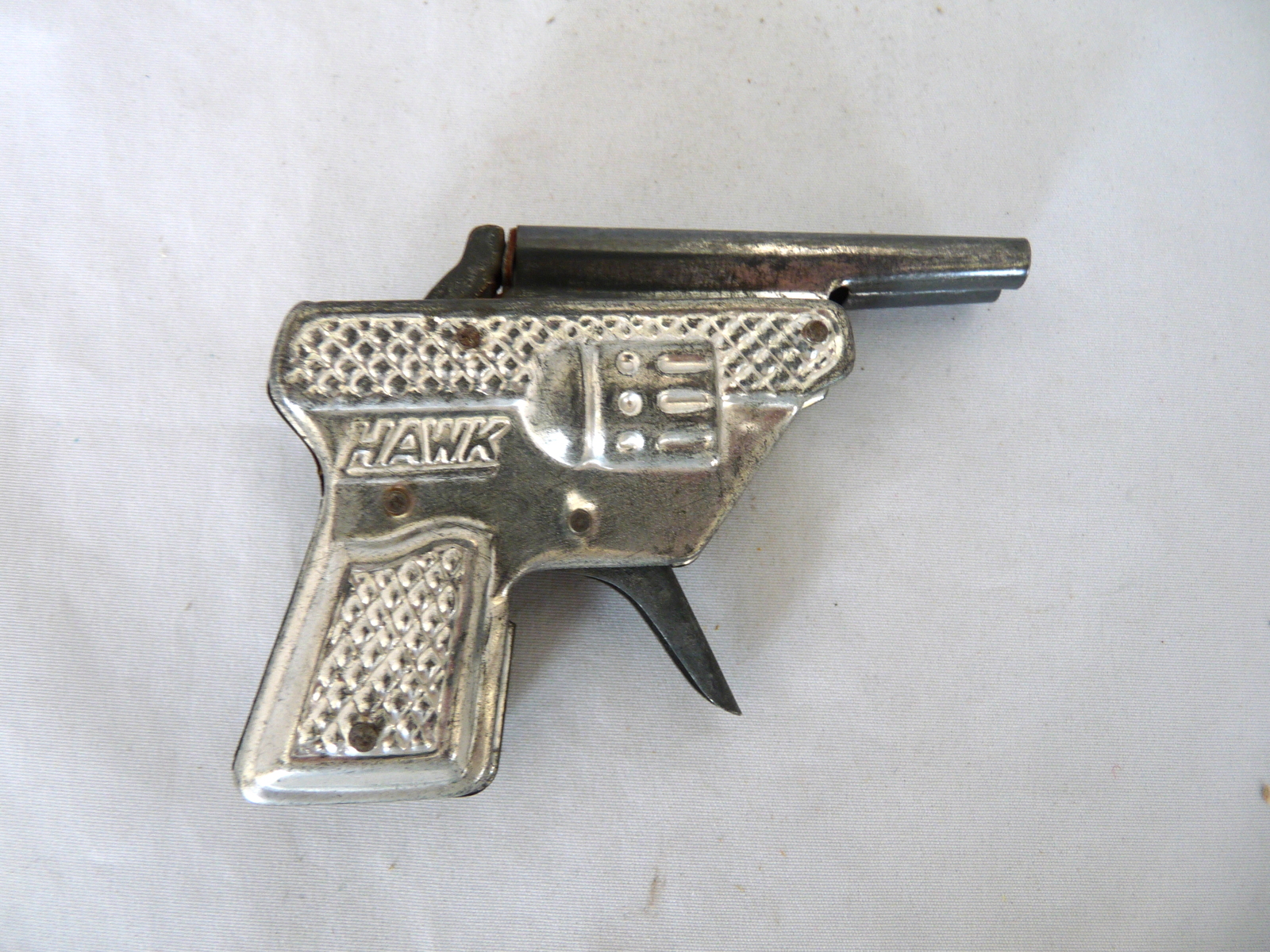 - Vintage toy Hawk double barrel cap pistol revolver gun