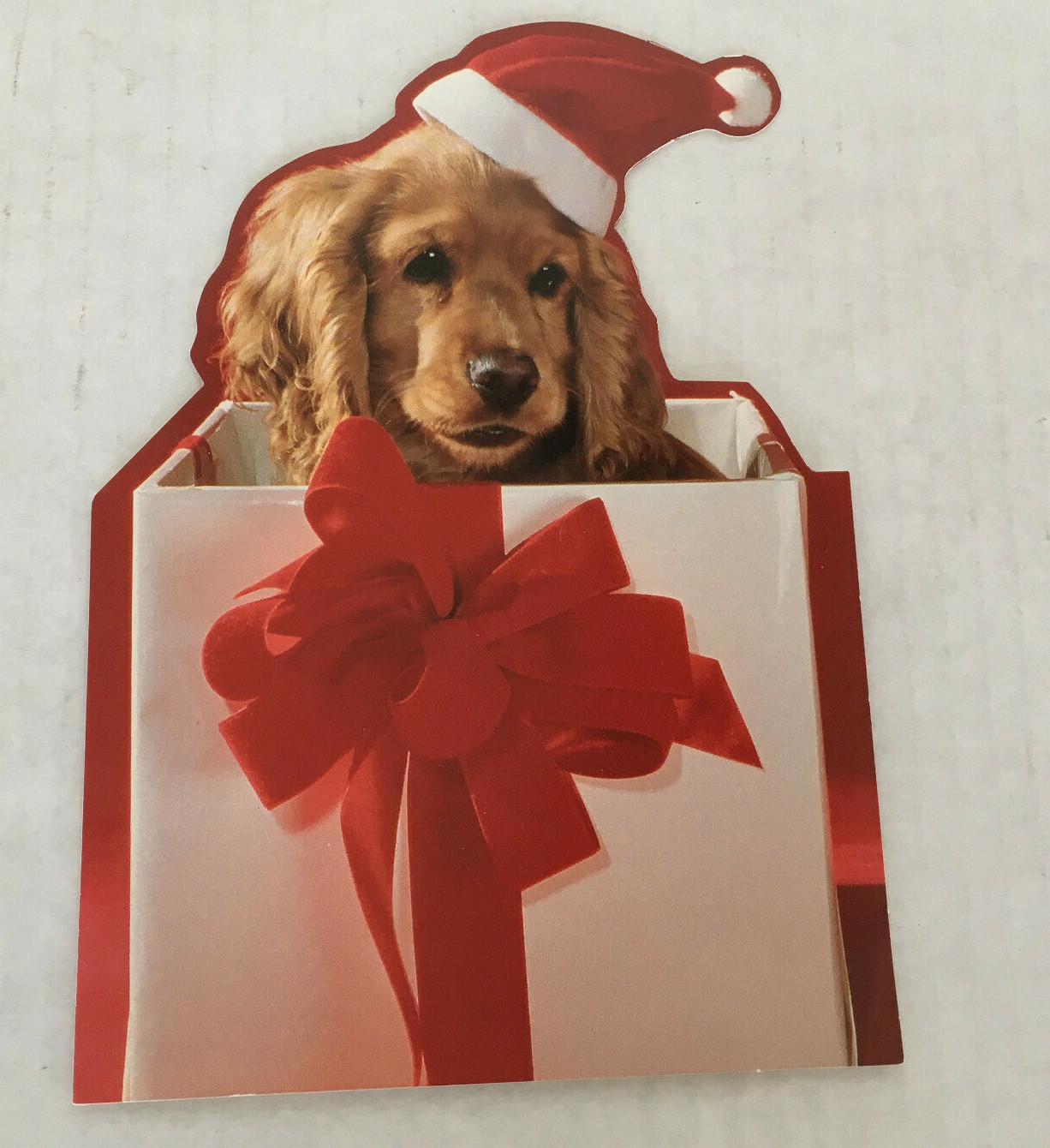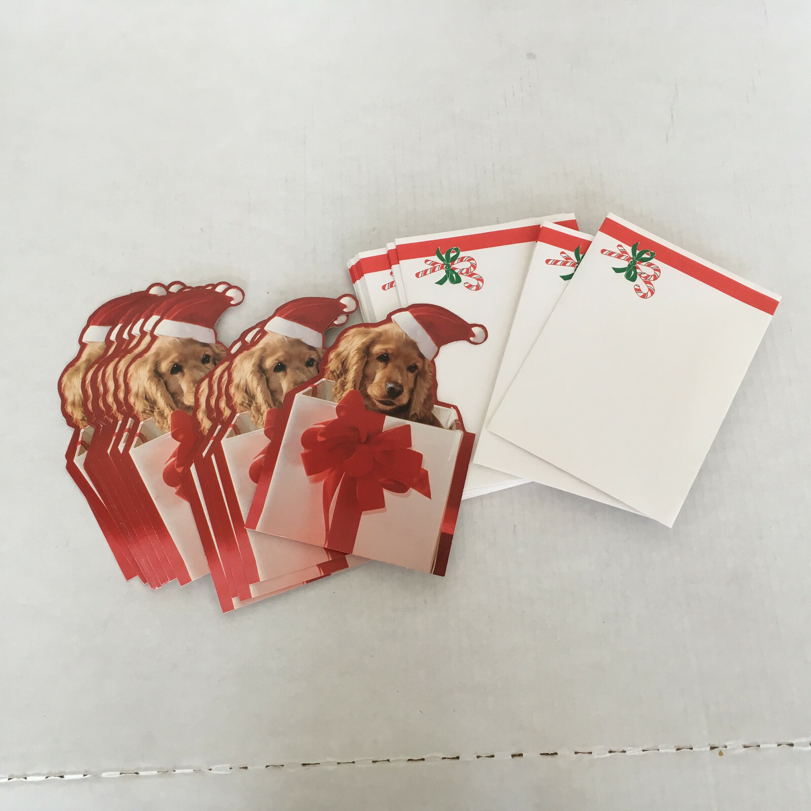 - Vintage unused puppy in gift box Christmas greeting cards candy cane envelopes