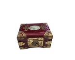 Vintagr China wood Jewelry Box with Brass Accents and Inlaid Jade Decor Stamped