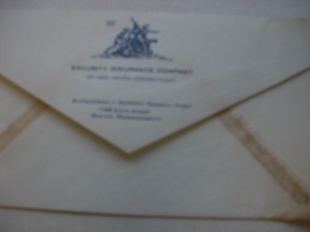 Violet 3 cent Thomas Jefferson Stamp post marked Feb 28th, 5:30 pm from Boston, Mass. Mailed from Security Insurance Company of New Haven Connecticut