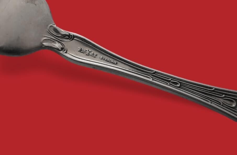 Sterling silver Cream Soup Spoon 12-piece set, 5 7/8", in the pattern Violet by Wallace. It is not monogrammed and is in excellent condition.