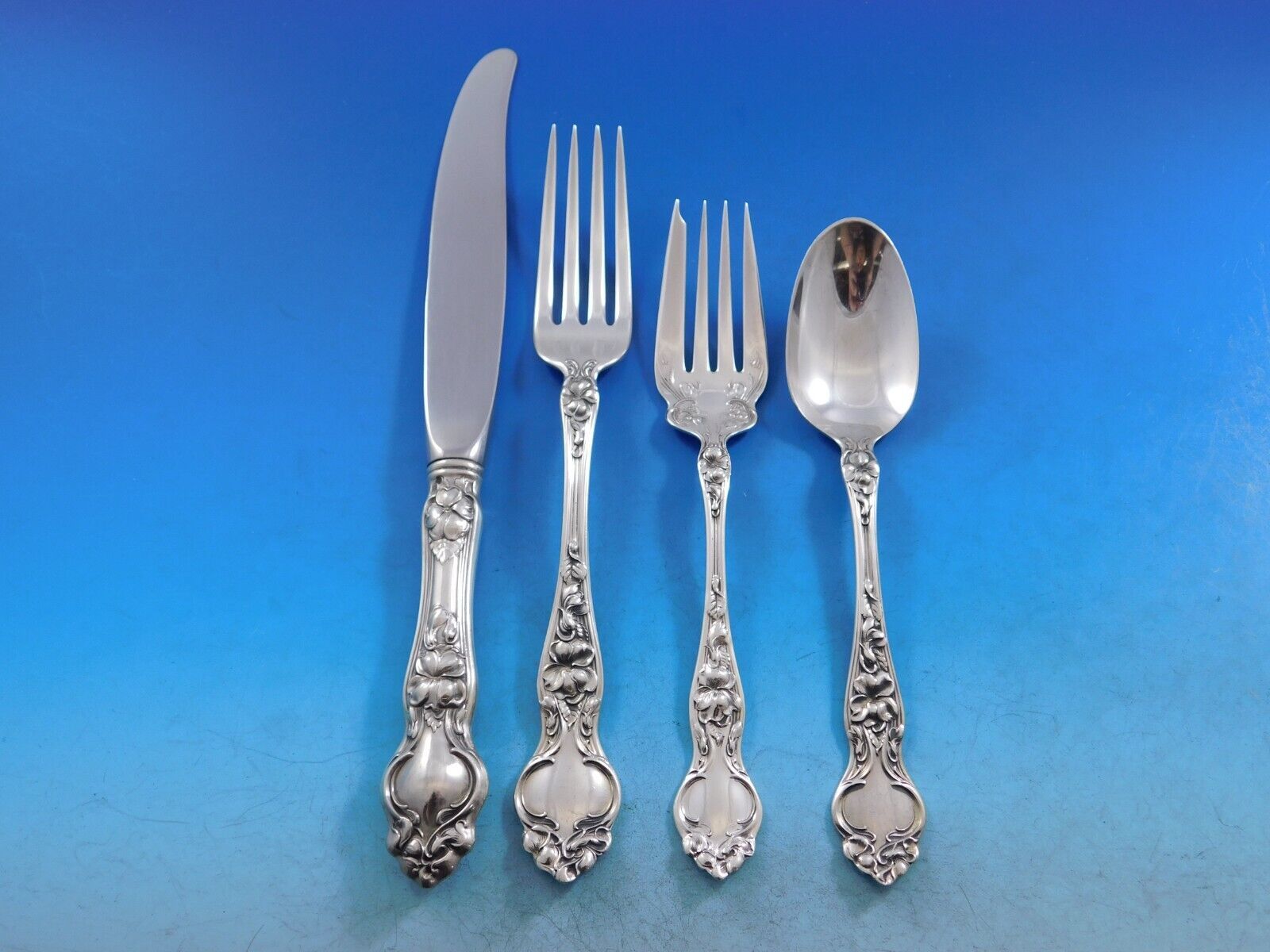 - Violet by Wallace Sterling Silver Flatware Service for 12 Set 64 pcs no monogram