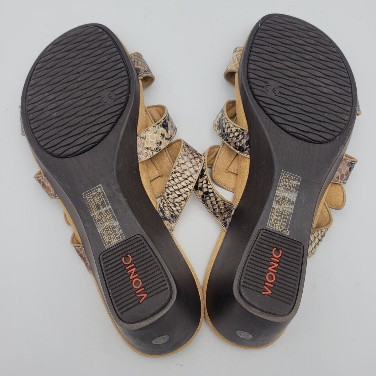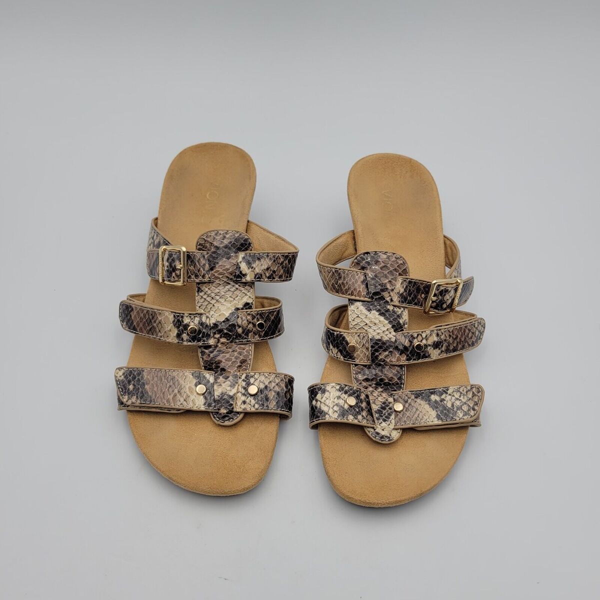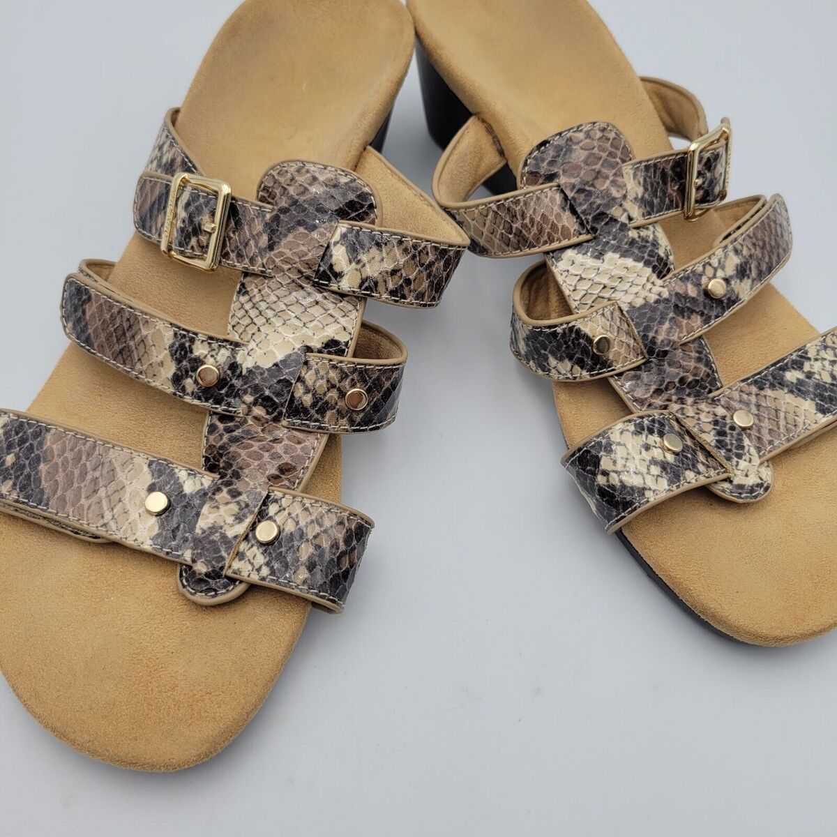 - Vionic Sandals Womens Size 8 Faux Snake Skin 3-Strap Buckle Adjustable Slide On