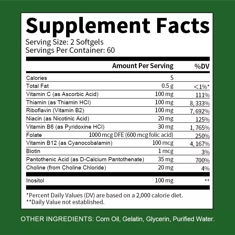 - Vitamin B Complex Capsules – Daily Support for Energy & Metabolism, 120ct