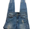 - Vivid Womens Skinny Jeans Small/36 Medium Wash Denim Distressed Raw Hem Flecked