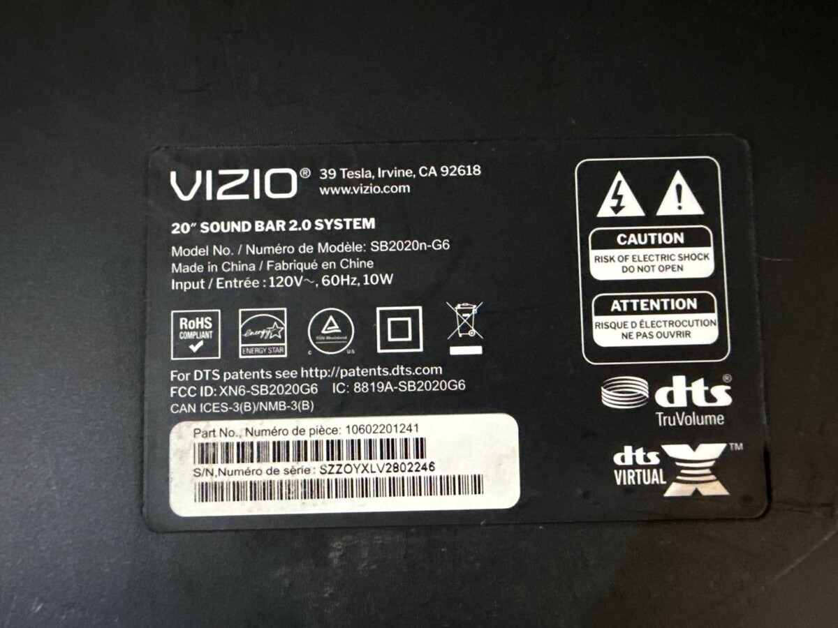 - Vizio SB2020n G6 Soundbar 2.0 Channel Bluetooth 10W DTS VirtualX 20 In Compact