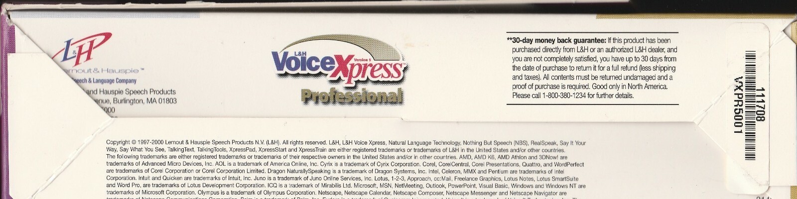 - VoiceXpress Professional Version 5 by Lernout & Hauspie for Windows ~ 2000 ~ CD-