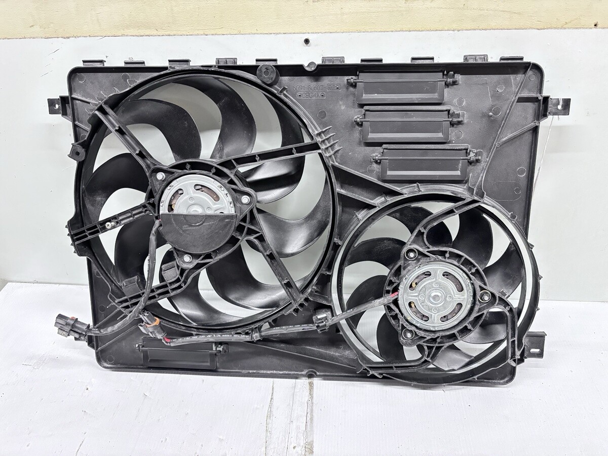 OEM Genuine Volvo XC70 dual radiator cooling fan assembly for 2008-2015. Used, front unit with fan blade; ballast not included. Please verify part number and photos for compatibility. Ships to 48 states via FedEx/UPS; international via Global Shipping. Returns only for mislisting or not as described.