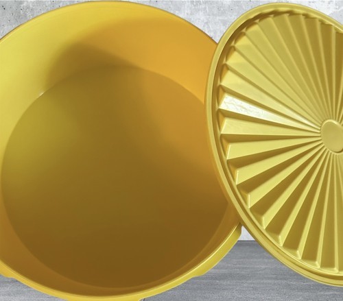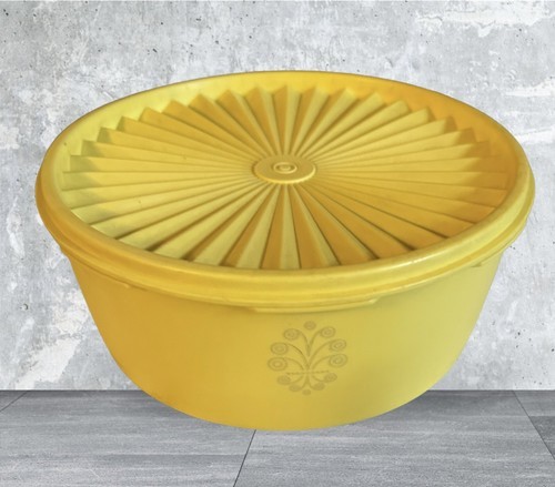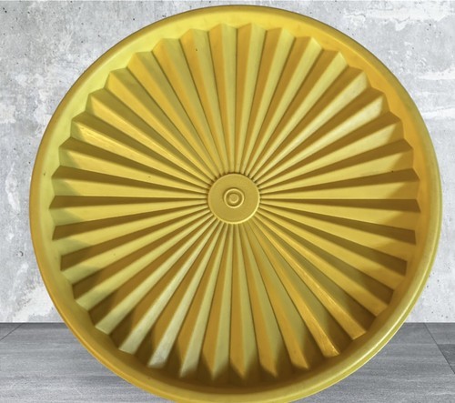 - Vtg 1204-12 Servalier Tupperware Canister Sunburst Yellow 8" dia, 3" w/Lid