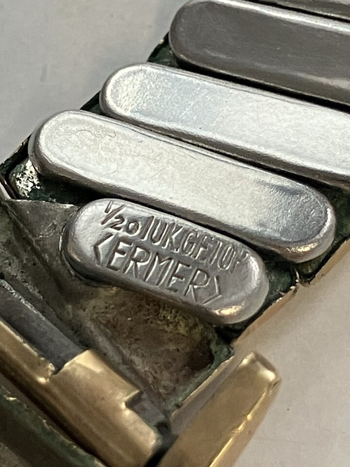 Likely 1930s or 1940s, the flex band has seen better days and probably needs to be replaced sooner rather than later. We are keeping it all together because you get it as we found it. Crystal has scratches but is serviceable.