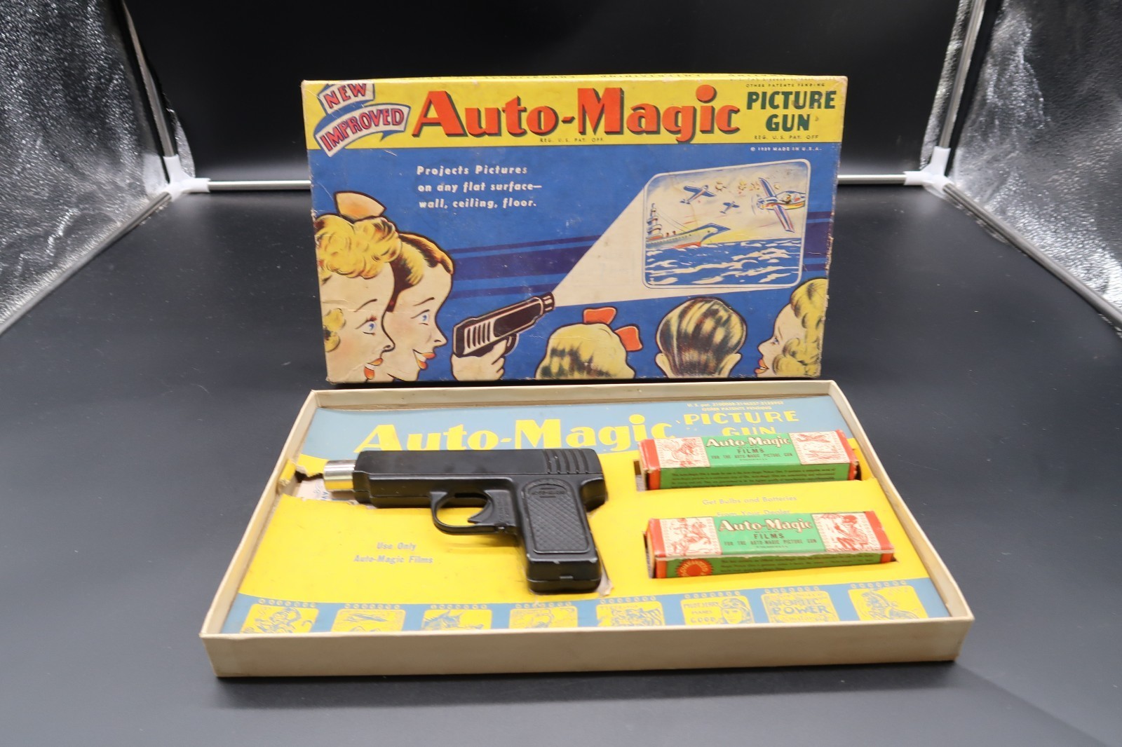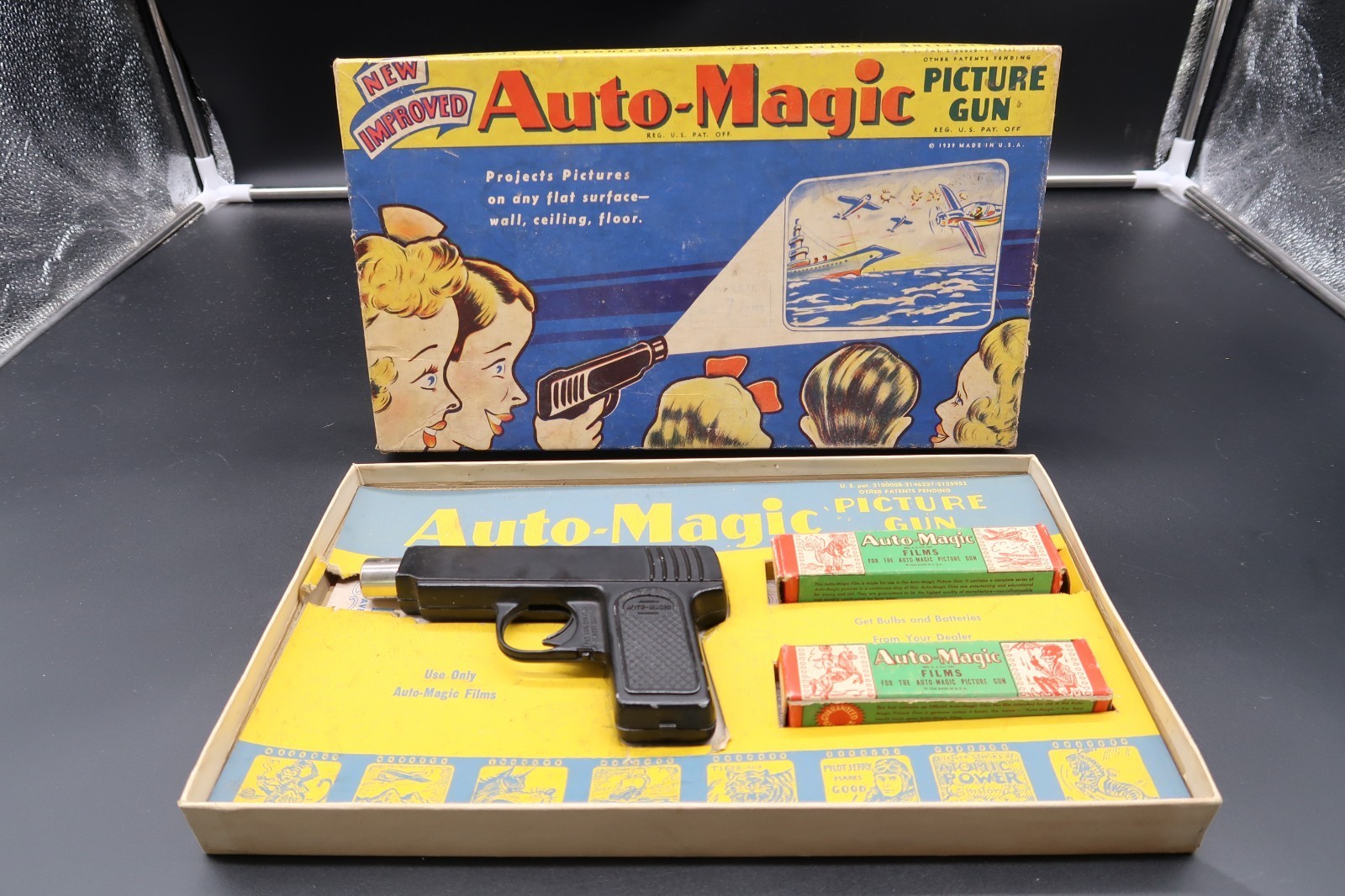 - Vtg 1939 Auto-Magic Picture Gun Complete W/ Films & Orig. Box Excellent Cond.