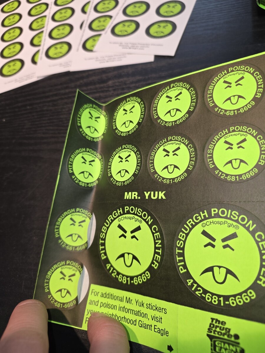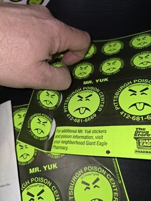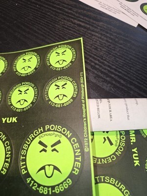 - Vtg 1972 Mr YUK Pittsburgh Poison Control Center Sticker Sheet Children Hospital