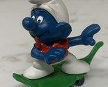 Vtg 1978 Schleich Smurfs Skateboarding Smurf PEYO PVC Figure Leaf Skateboard