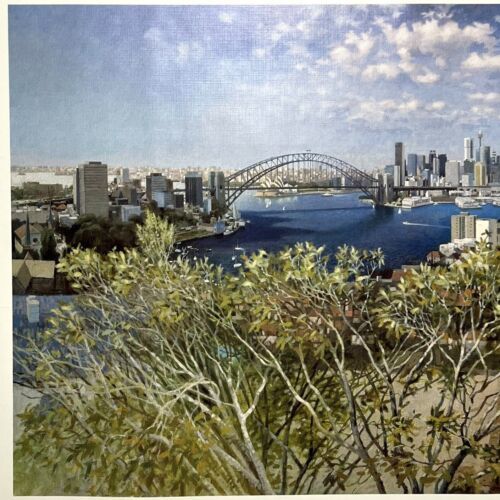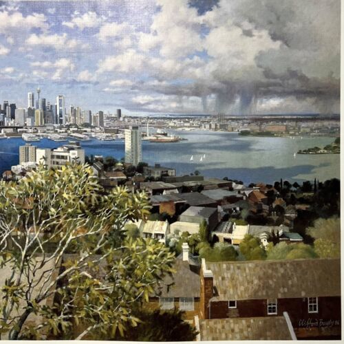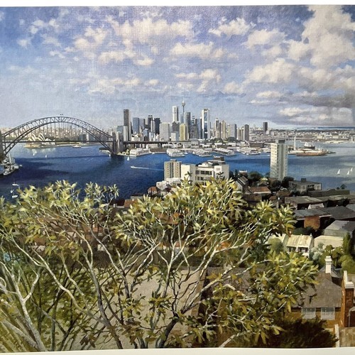 - Vtg 1980's Art Print Sydney from Blues Point Australia Clifford Bayly 23" x 37"
