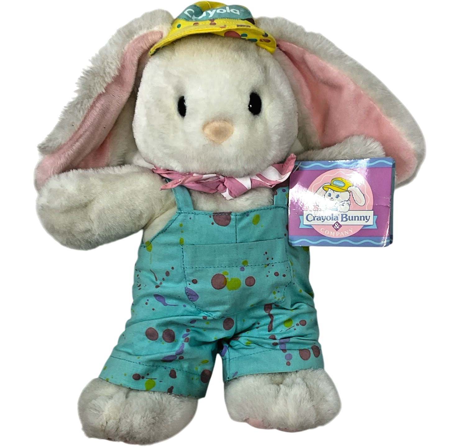 - Vtg 1990 Hallmark Crayola Bunny Plush 12" Rabbit Overalls Hat Tags Easter Toy