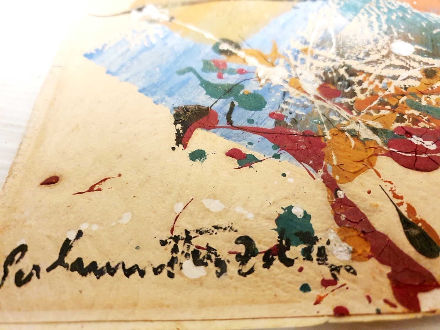 - Vtg '60 Romanian Zoltan Perlmutter Surrealistic Painting Tree Running 50 x 34 cm