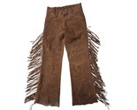 Vtg 60s 70s Hippie Brown Suede Leather Fringe Flare Pants 34x32