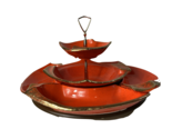 - Vtg 70s Mid Century Modern MCM Ceramic Serving Tray Wood Swivel Lazy Susan Base