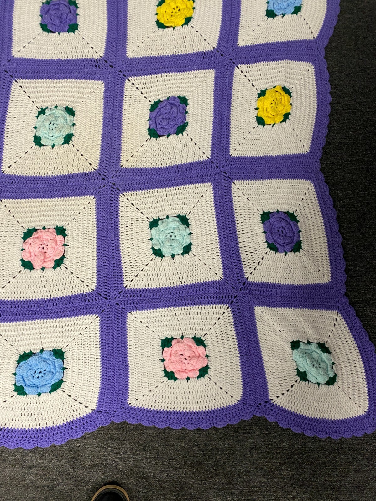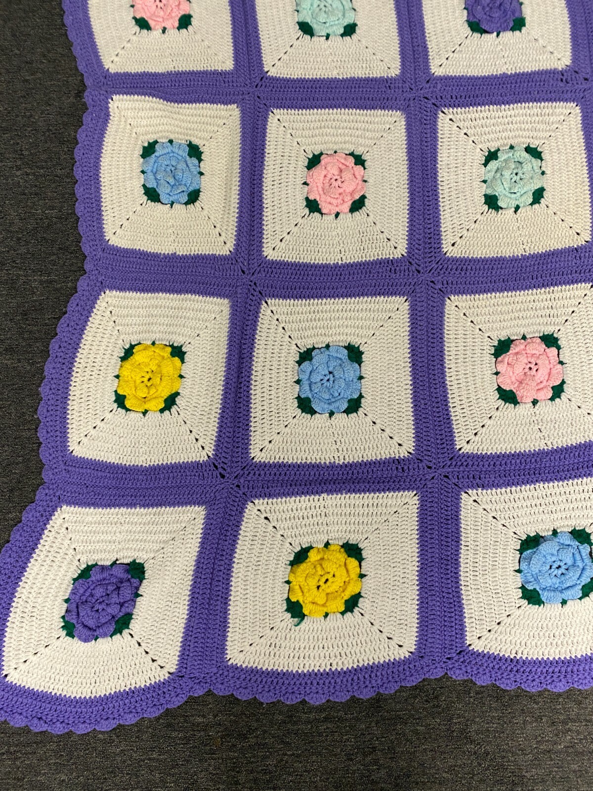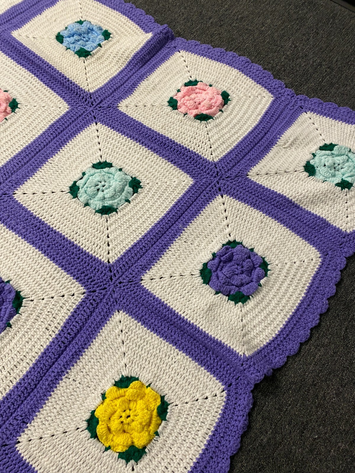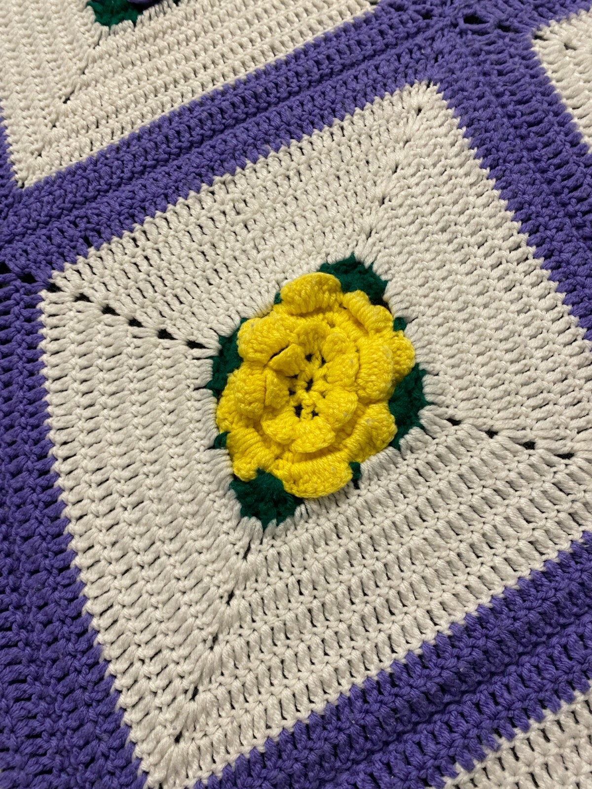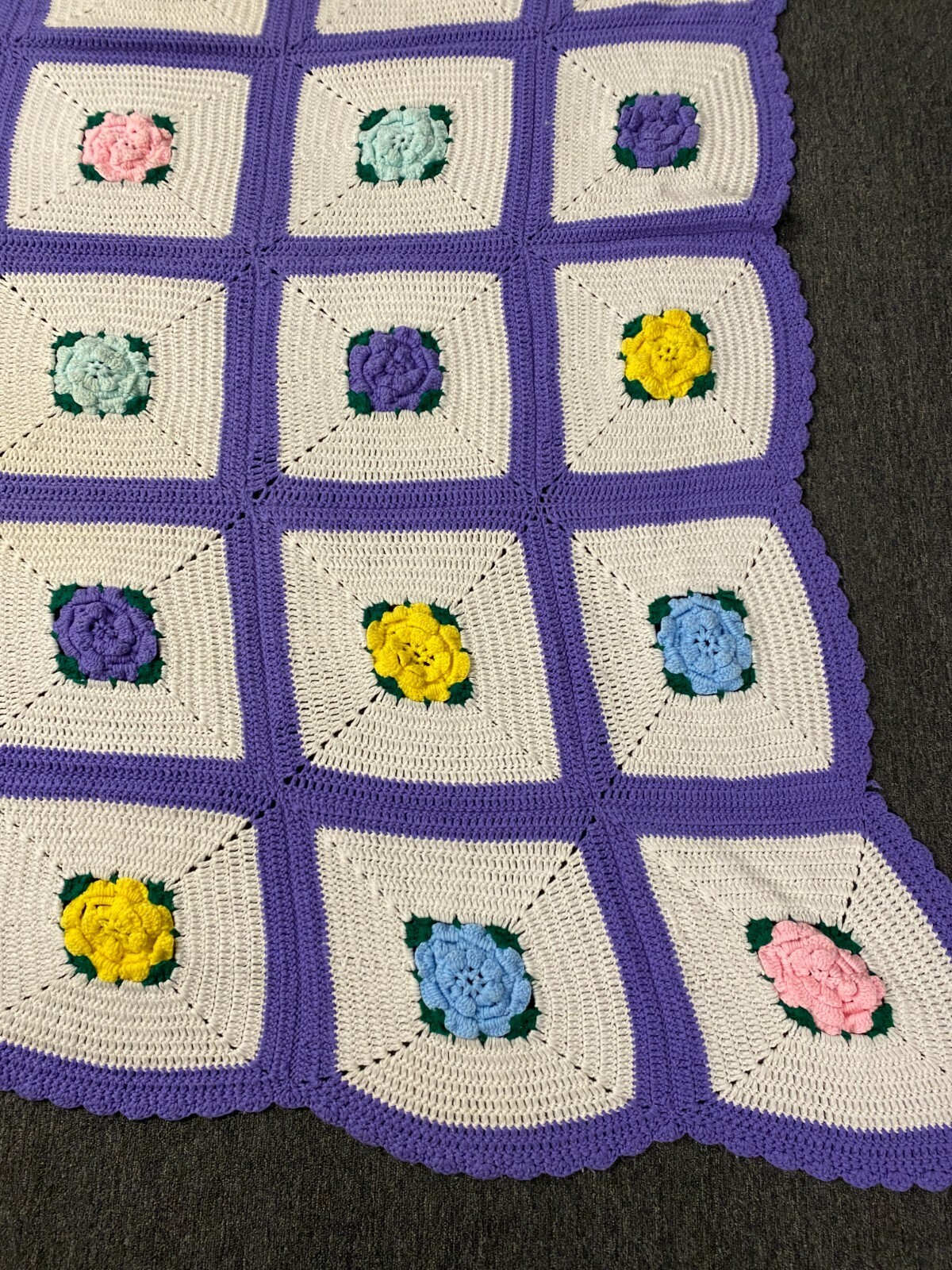 - Vtg 70s Mid Century Modern MCM Crochet 3D Flower Floral Throw Blanket 78"x78"