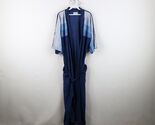 - Vtg 70s Streetwear Mens OSFA Distressed Striped Velour Belted Bath Robe Blue USA