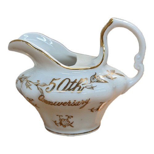 Vtg 50th ANNIVERSARY 7pc Set Creamer Sugar Bowl Japan tea cups Saucers Gold