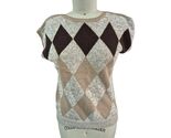 Vtg 80s Devon Harlequin Diamond Pattern Sweater Heathered Beige/Brown Sz M