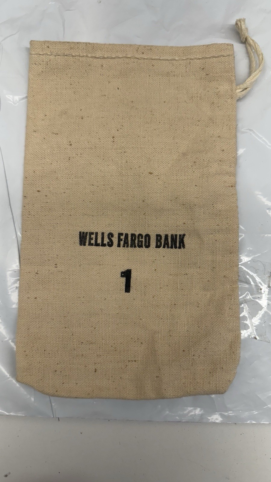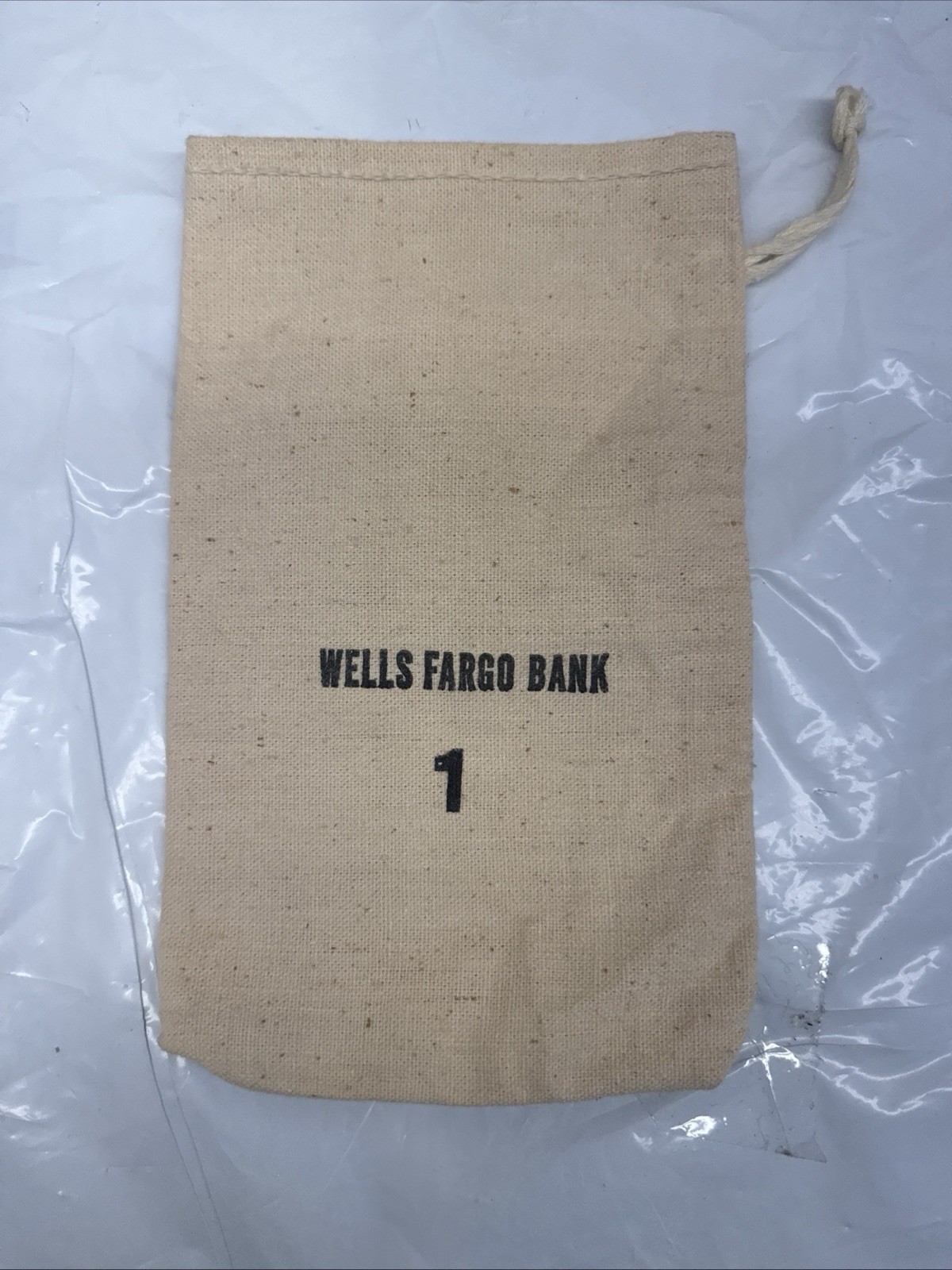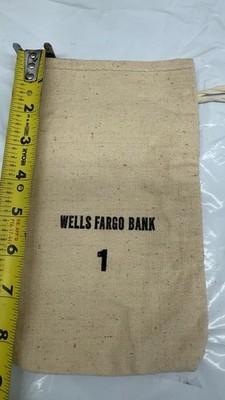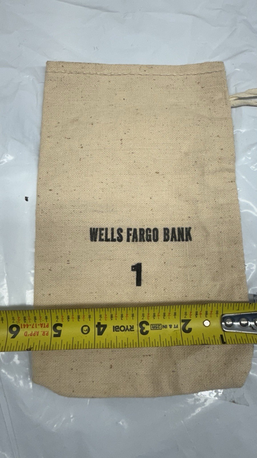 - Vtg 9” Canvas Well Fargo Bank Bag Number 1
