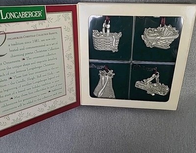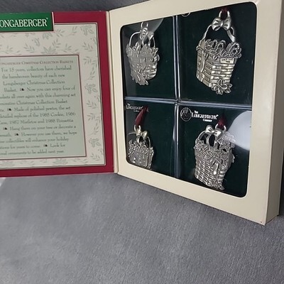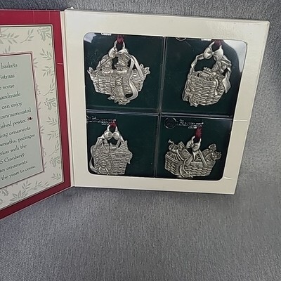 Vtg 90's Longaberger Christmas Collection Pewter Basket Ornaments 5 Sets