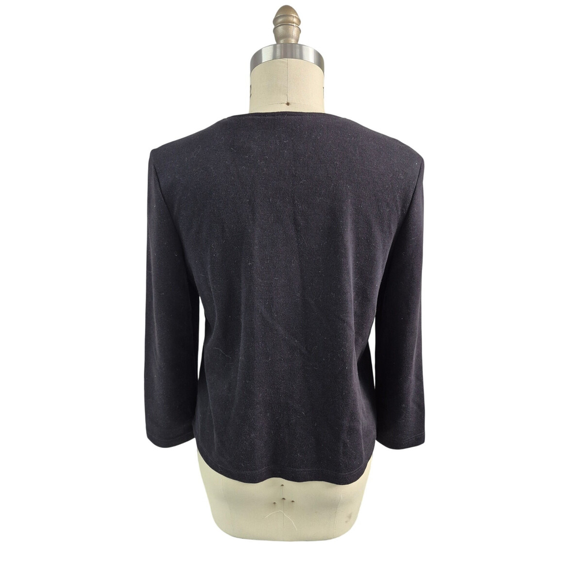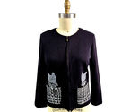 Vtg 90s Onque Casuals Cotton/Poly Black Zip-up Sweater Kitty Pockets Grandma M