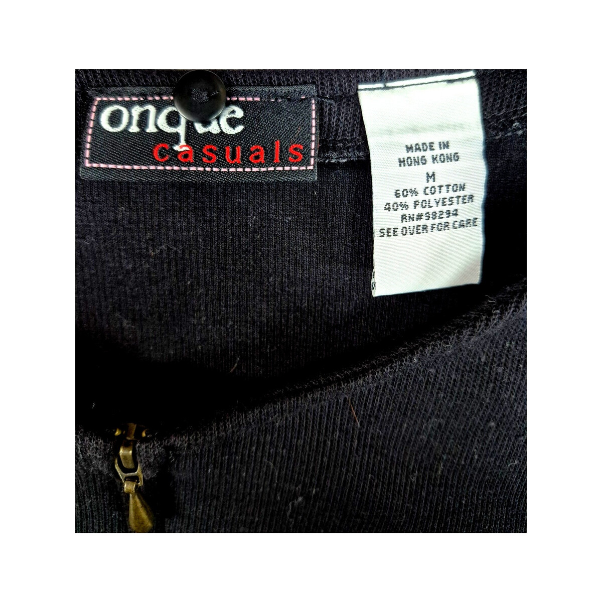 - Vtg 90s Onque Casuals Cotton/Poly Black Zip-up Sweater Kitty Pockets Grandma M