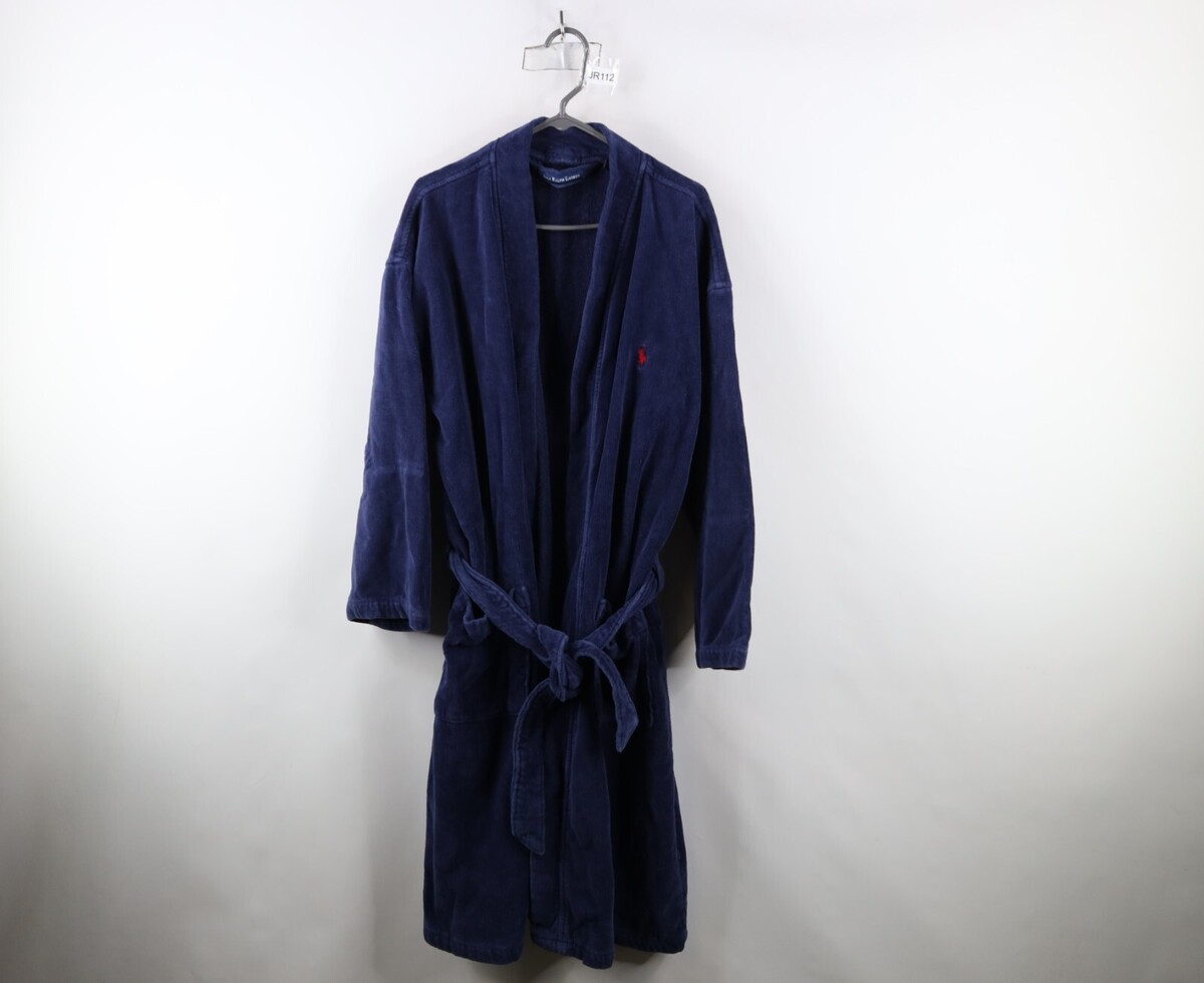 - Vtg 90s Ralph Lauren Mens S / M Faded Heavy Belted Terry Cloth Bath Robe Blue