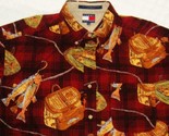 Vtg 90s Tommy Hilfiger Fly Fishing Long Sleeve Button Down Shirt Red Plaid LG